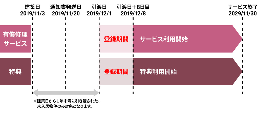 ※例①:12月1日が引渡日で、11月20日に登録完了通知書が発送された場合、12月8日からご利用できます。