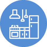 | システムキッチン | 1台 | ガスコンロ、IHクッキングヒーター、レンジフード(換気扇含む)、食洗機、浄水器、キッチン一体型照明器具本体、混合水栓、ディスポーザー、電動昇降戸棚 |